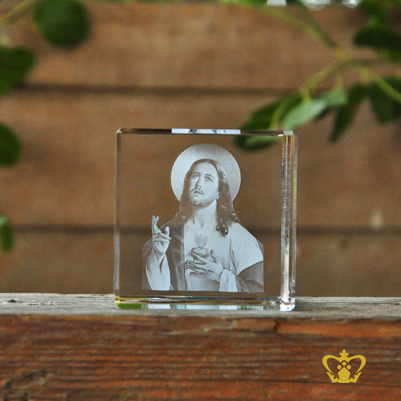 As per the Christian faithful, Jesus Christ is the son of God, the redeemer of the world. You can personalize this crystal cube by engrave your own photo, logo, text, design or any ideas. Click on customize button and upload your image or text and buy online, you can also click on enquiry button we will respond as soon as we can. To produce a 3D crystal, firstly our designers transform any of your ordinary photographs into amazingly 3D images. Then it imprinted or engraved in crystal cube using our precision laser technology in crystal cube. 3D crystal cube or blocks are often used for 3D or 2D crystal portraits and given as gifts for wedding, birthdays, Valentine's Day, wedding, mother's day, father's day, graduation, remembrance, memorial or anniversary gift. There are also great corporate or business gifts for recognition awards, promotional paperweights and event mementos. Corporate logos laser engraved inside of the crystal make elegant client and employee gifts. These laser crystals accommodate 3D layered designs where text and image can be engraved at different depths in the crystal. You can add an optional light base and the interaction of the white LED light with the engraving creates bright and sparkling 3D keepsake.