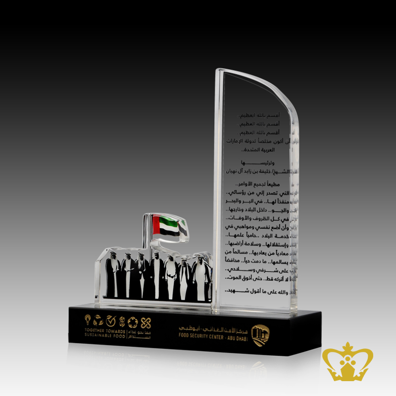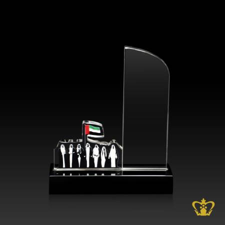 UAE National Day Cutout trophy with Rulers and engraved spirit of the union and the national flag of the United Arab Emirates