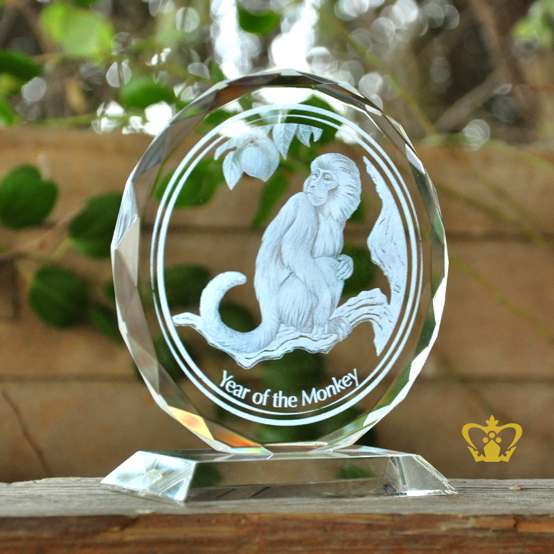 Manufactured Artistic Crystal Plaque Engraved Year of the Monkey