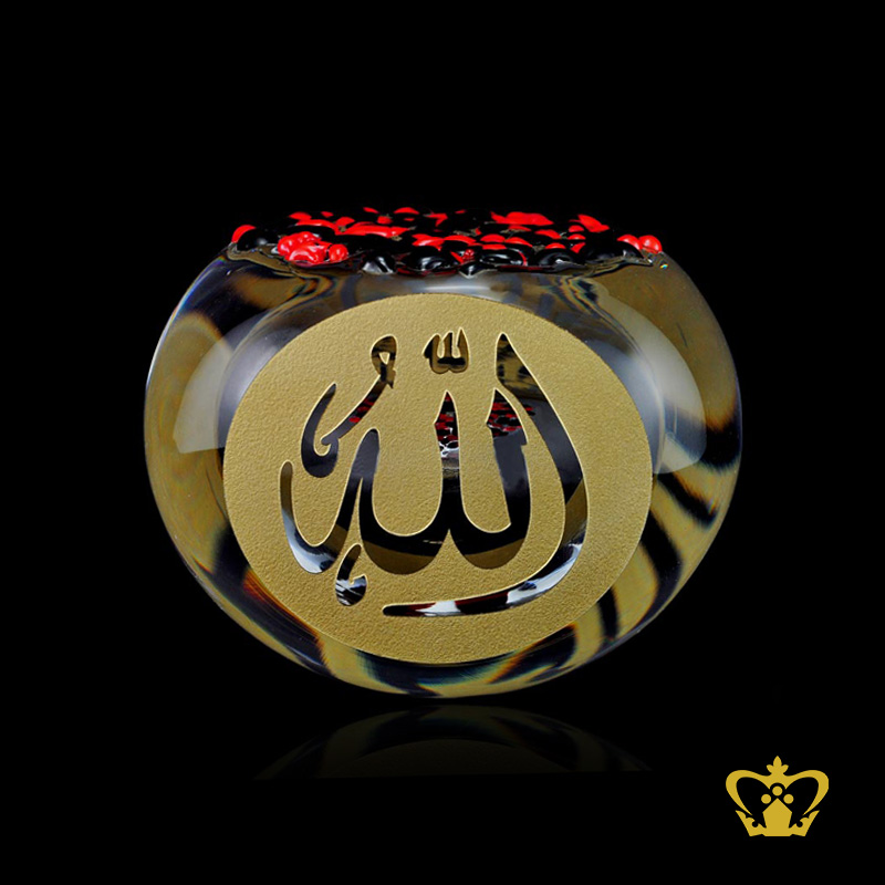 Round-Crystal-with-Abstract-Art-Paper-weight-Islamic-Gift-Eid-Ramadan-Occasion-Souvenir-Allah-Engraved-Golden-Arabic-Word-Calligraphy- Product Product Product Product