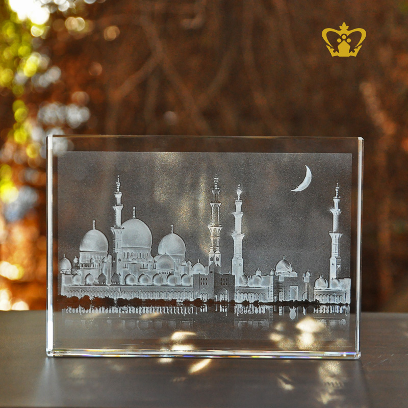 Islamic Ramadan Eid Gift Sheikh Zayed Grand Mosque Crystal Laser Engraving 2D Laser Engraved Crystal