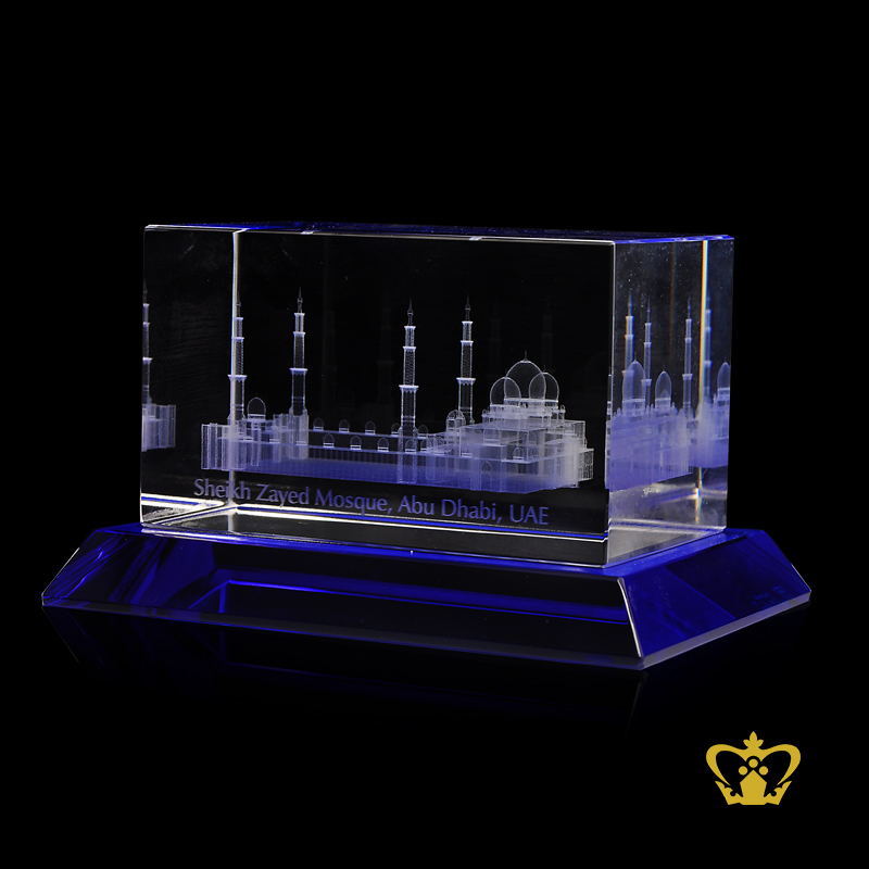 Blue-Crystal-Base-Sheikh-Zayed-Mosque-3d-Laser-Engraved-Tourist-Souvenir-Corporate-Gift-Customized-Logo-Text Product Product Product
