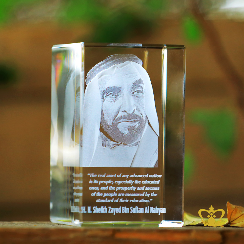 3D-laser-engraved-crystal-rectangular-cube-H-H-Sheikh-Zayed-Bin-Sultan-Al-Nahyan-with-his-most-popular-quotes-etched-Inspirational-Motivational-Gifts-60X60X100-MM Product Product Product Product Product Product Product Product Product