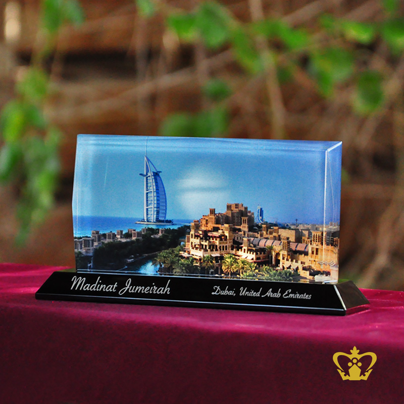 Crystal-Rectangle-Plaque-Horizontal-With-Black-Base-Madinat-Jumeirah-Customized-Logo-Text-3X6-IN Product Product Product Product Product Product