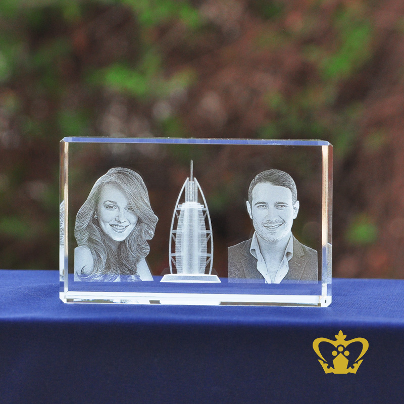 Customized Crystal Cube in 3D Photo Laser engrave with Burj Al Arab souvenir gift