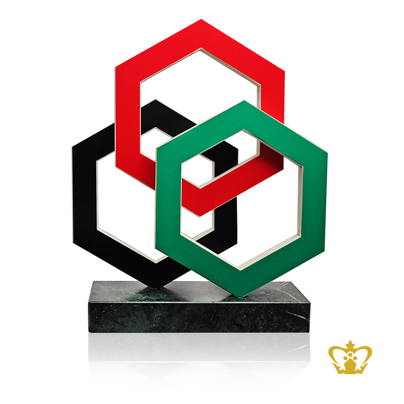 Personalized-marble-hexagon-art-trophy-green-red-and-black-color-with-marble-base-customized-logo-text Product