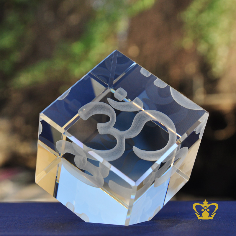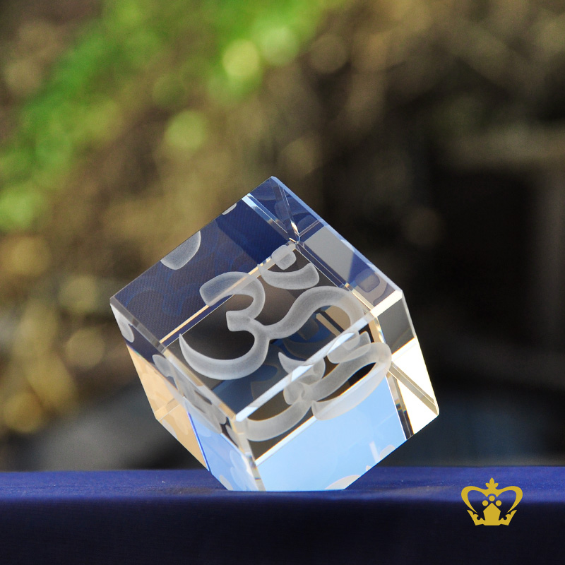 Religious spiritual holy gift Om 3D laser engraved crystal cube Indian festival Diwali celebration Hindu god