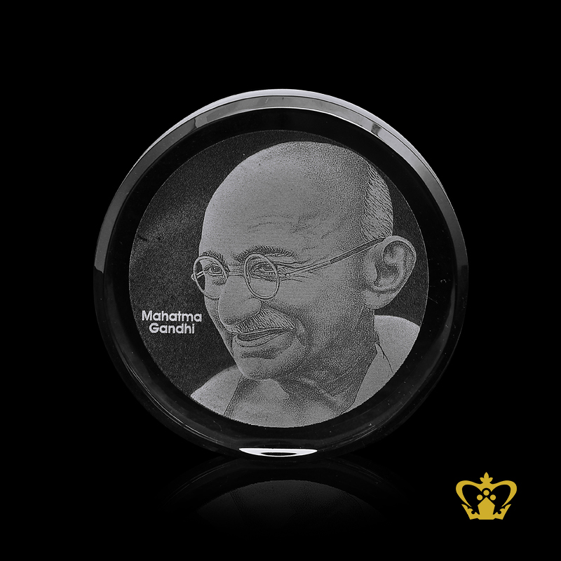 Round-Crystal-Paper-Weight-laser-engraving-Mahatma-Gandhi Product Product Product