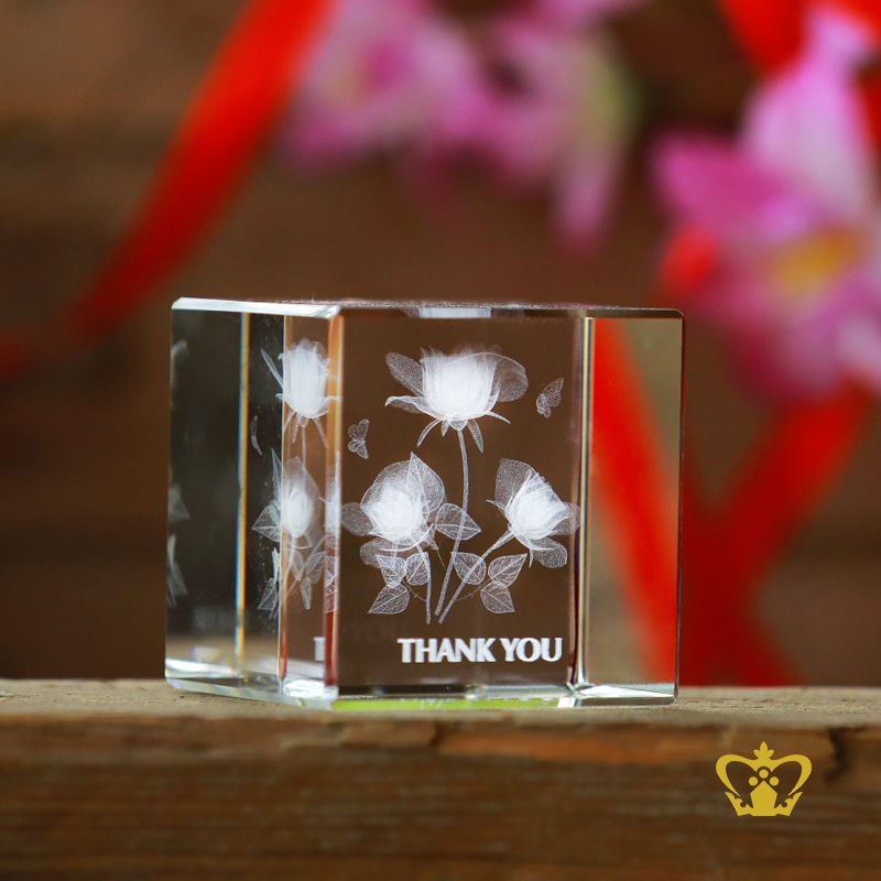 Crystal cube rose flower 3D laser engraved cube valentines day gift 2d 3d customized personalized text word engrave etched printed gift special occasion for her for him valentines day wedding