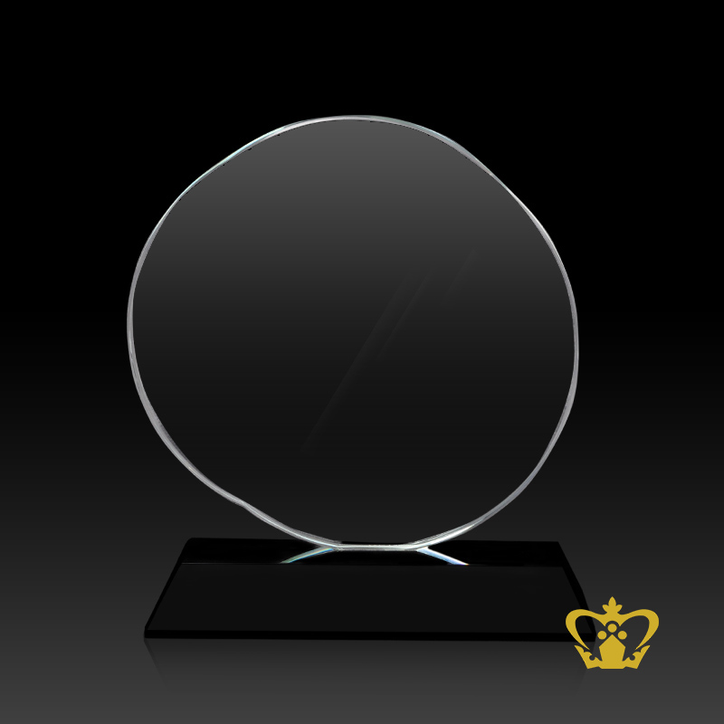 Handcrafted Crystal Circle Trophy Stands On Black Crystal Base Customize Text Engraving