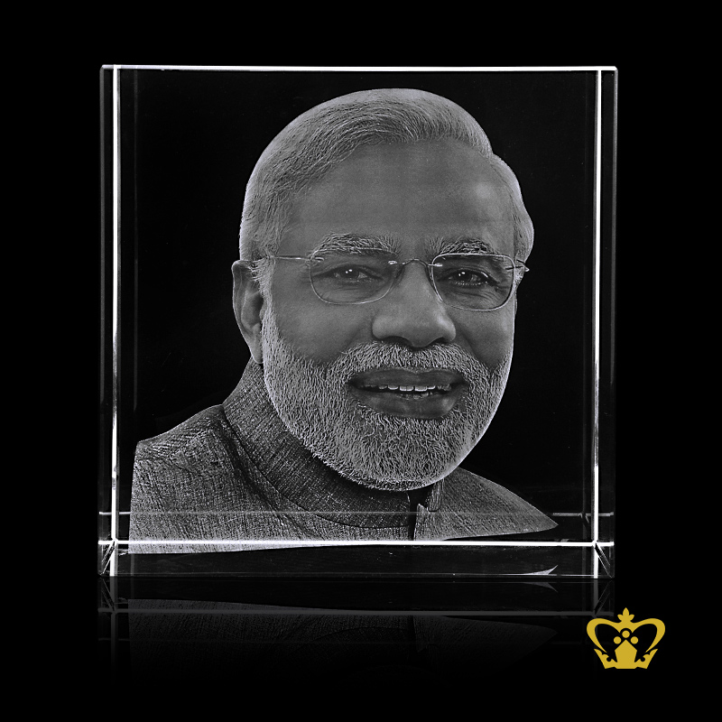 Crystal rectangular cube 3D laser engraved Narendra Modi etched