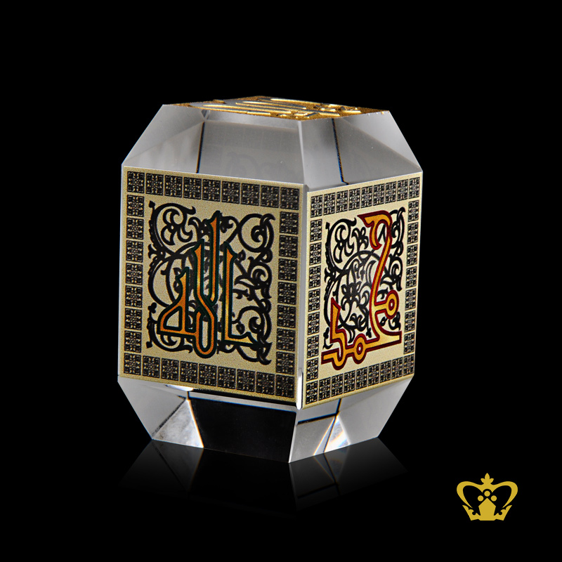 Crystal Gallery represent the craft traditions of the Islamic world with uncompromising quality and exceptional craftsmanship: to bring you a fine selection of unique handcrafted crystal corporate Islamic Gifts. Our Islamic artifacts gift decor collections are increasingly popular locally in Dubai, UAE, GCC and abroad. With a portfolio of high profile clients, our luxury giveaways have added the perfect awe-aspiring touch to many occasions and events. Our brand is widely recognized and endorsed by our clients for its classy Islamic gift collections and excellence of service. We design experiences in the world of luxury corporate gifts. This Modern Islamic Art handcrafted decorative item is the perfect addition to your home decor! Also can makes a great housewarming gift, Eid Gift, Ramadan Gift, Shahadah, gift for someone returning home from Hajj!
