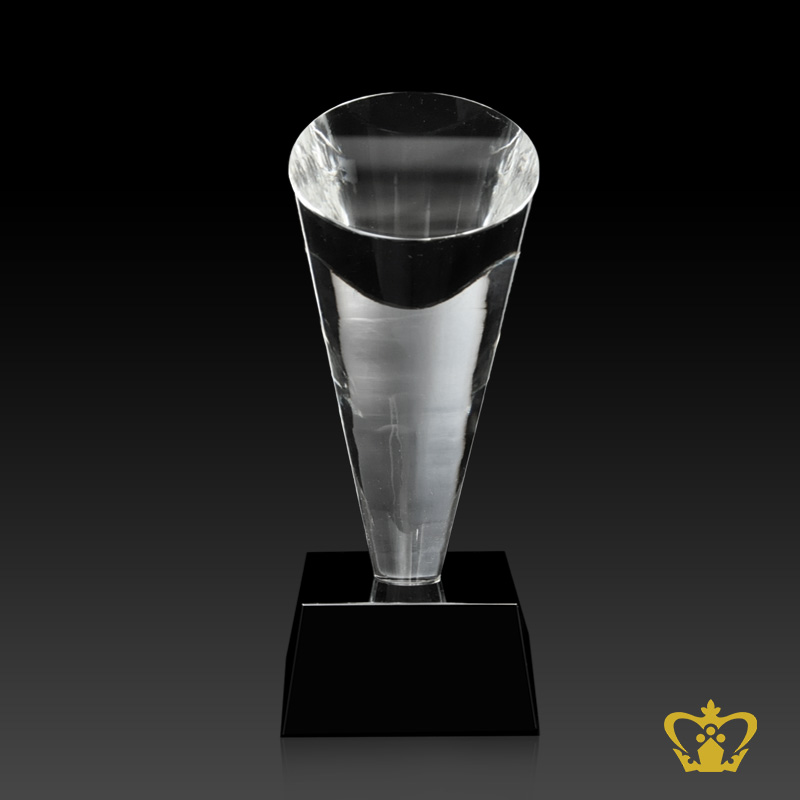 Personalized-crystal-slant-cone-trophy-with-black-base-customized-text-engraving-logo Product Product Product Product Product