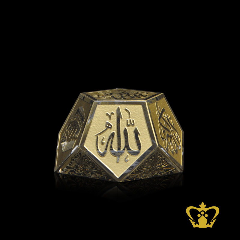 Crystal-golden-cube-engraved-Arabic-word-calligraphy-Allah-Bismillah-Ir-Rahman-Ir-Rahim-Muhammed-Rasul-Allah-Islamic-religious-occasion-souvenir-Ramadan-Eid-gift Product Product