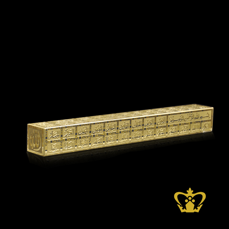 Asma ul husna Arabic word calligraphy engraved on crystal cube Islamic souvenir religious occasions Ramadan Eid gifts