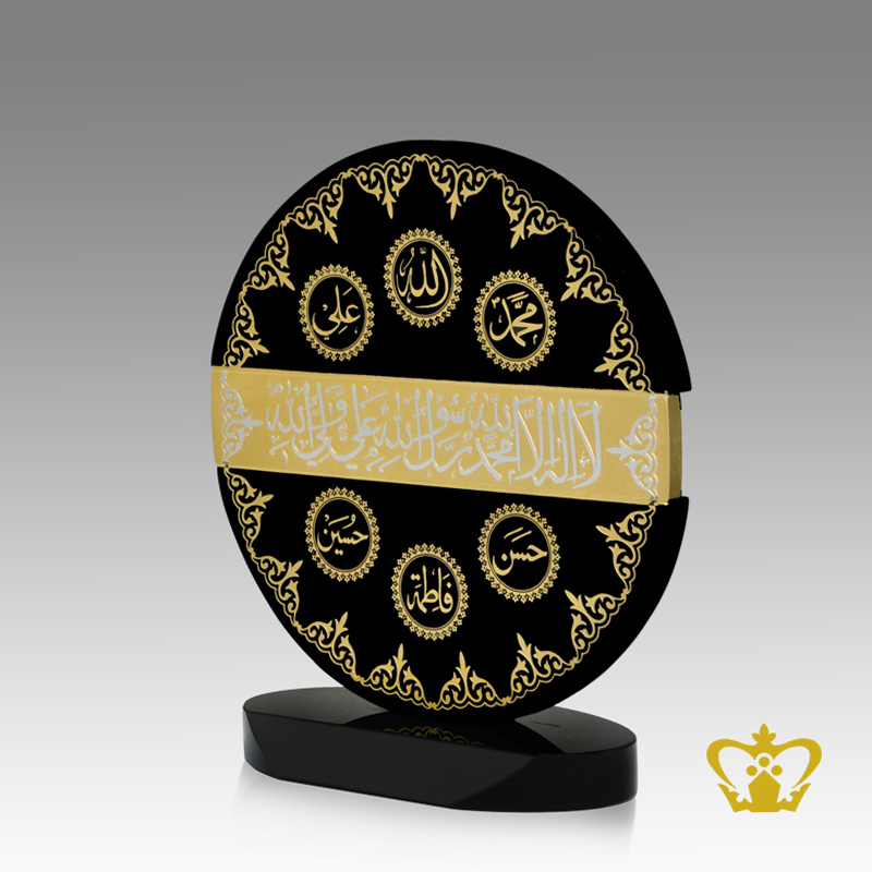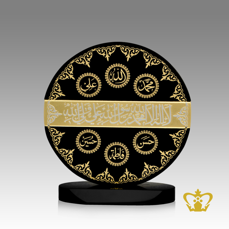 Decorative Islamic crystal circle trophy with Arabic word calligraphy engraved Panjtan Ahl Al-kisa Islamic occasions religious Ramadan souvenir Eid gifts