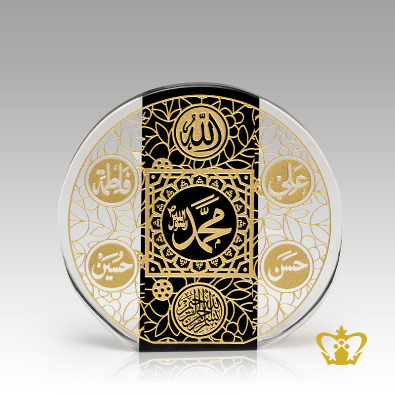 Black-and-clear-crystal-round-paper-weight-Arabic-word-calligraphy-engraved-Panjtan-Ahl-Al-kisa-Islamic-occasions-religious-gift-ramadan-souvenir Product Product Product