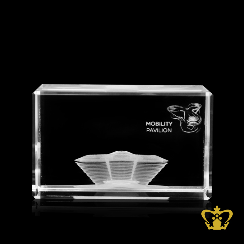 Crystal cube engrave with mobility pavilion 3D laser customize text and logo