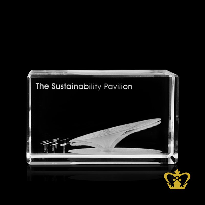 Crystal cube engrave with sustainability pavilion 3D laser customize text and logo