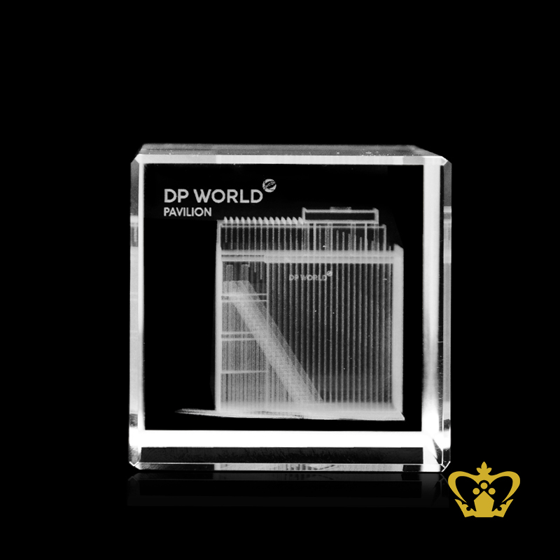 Crystal cube engrave with DP world in 3D laser customize text and logo