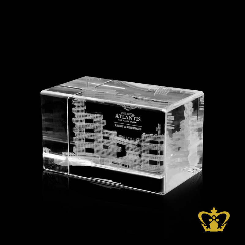 Crystal cube engrave with royal Atlantic 3D laser customize text and logo