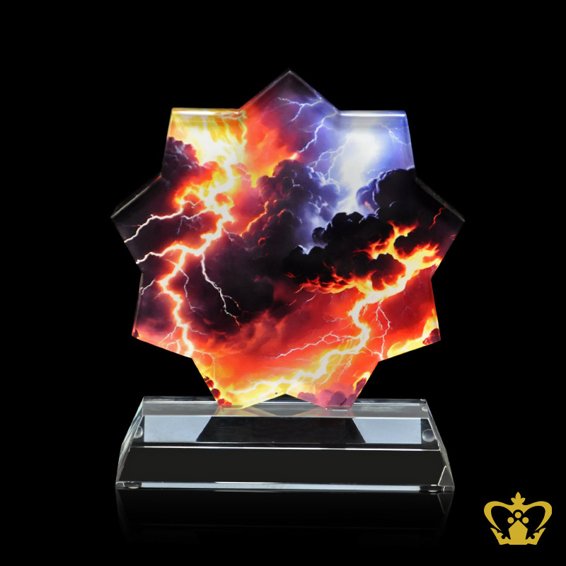 Crystal plaque star cutout with UV printing thunder and lightning