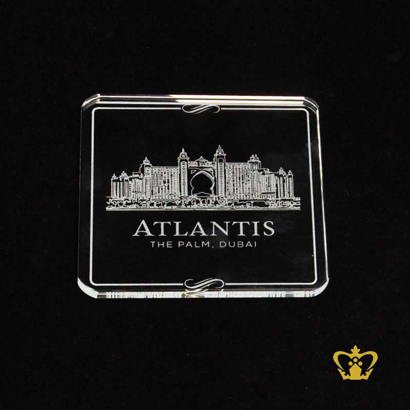 Famous-landmark-Atlantis-hotel-Dubai-engraved-crystal-coaster-UAE-souvenir-tourist-gift Product