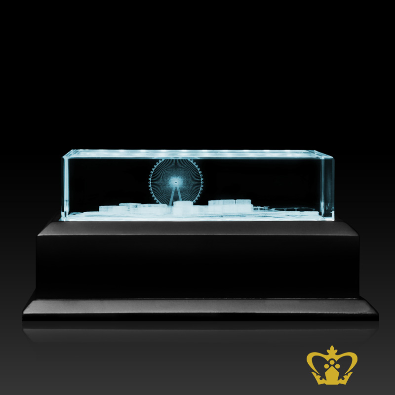 Ain Dubai 3D laser engraved crystal cube with wooden led light base