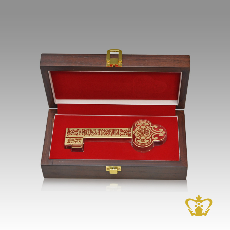 Crystal key cutout golden Arabic word calligraphy engraved Bismillah Ali Un Wali Islamic religious occasions gift Eid Ramadan souvenir