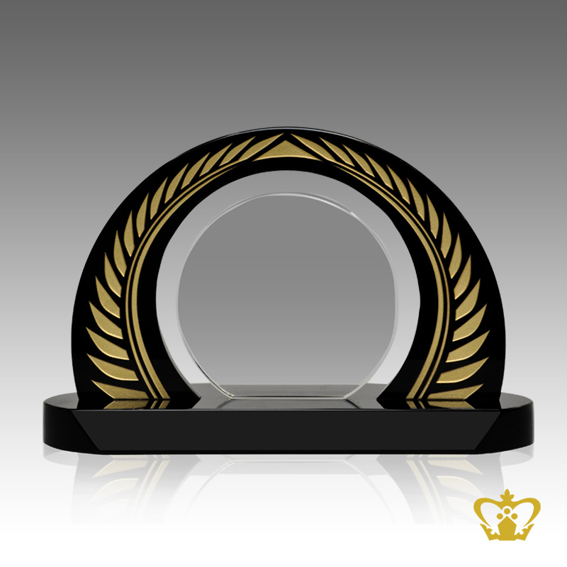 Handcrafted-optic-clear-circle-and-black-crystal-trophy-with-leaf-engraving Product Product Product Product