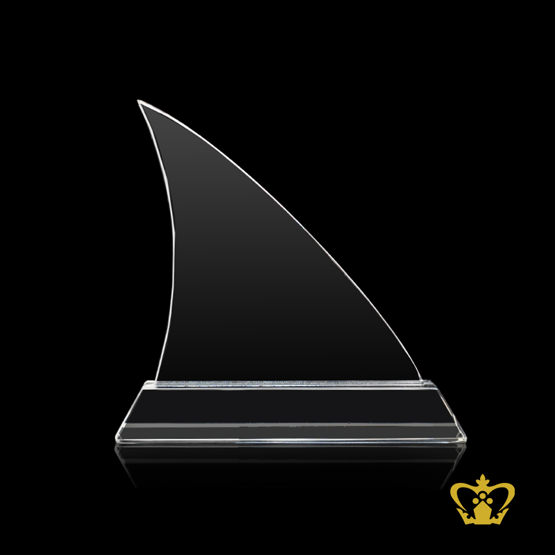 The crystal trophy emulates the sail of a maritime vessel. A trophy is a tangible, durable reminder of a specific achievement, and serves as recognition or evidence of merit. Trophies are often awarded for sporting events, from youth sports to professional level athletics.Our customizable award plaques available in different shapes and styles that will be suitable for any occasion. Choose from our unique plaques for ongoing awards, corporate gift in various event, or single plaques to recognize individual achievement. Custom engraved plaques come in a variety of materials, such as crystal, glass, wood, metal and acrylic. We recommend sorting through our selection for traditional, memorial, and photo plaques as well. Whatever plaque you choose, we can add custom engravings to any of the items that interest you. Our advanced engraving services can place your organization's logo directly onto the plate. Order yours online today by click on customize button and upload your logo or image and text, you can also click on enquiry button we will respond as soon as we can.