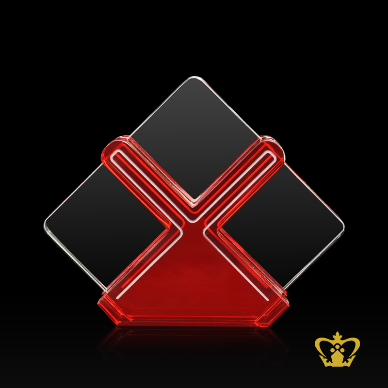 Personalized triangular shape trophy red and clear crystal customize logo text engraving