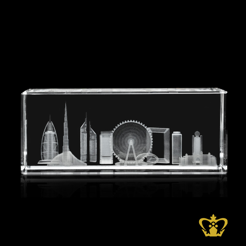 Crystal Cube Dubai Skyline 3D Laser Engraved Crystal Dubai Souvenirs