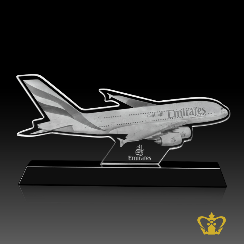 Personalized-crystal-cutout-of-Emirates-Aeroplane-2D-laser-customized-text-logo-engraving-Engraving Product Product Product Product