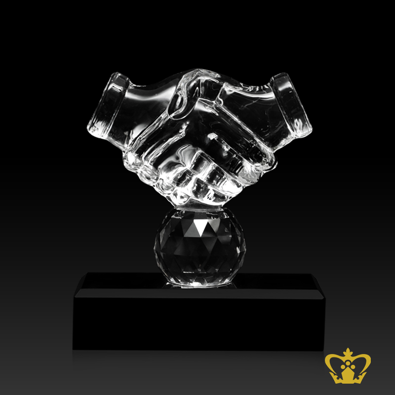 Personalized-crystal-handshake-replica-with-diamond-and-black-base-customized-text-logo-engraving Product Product Product