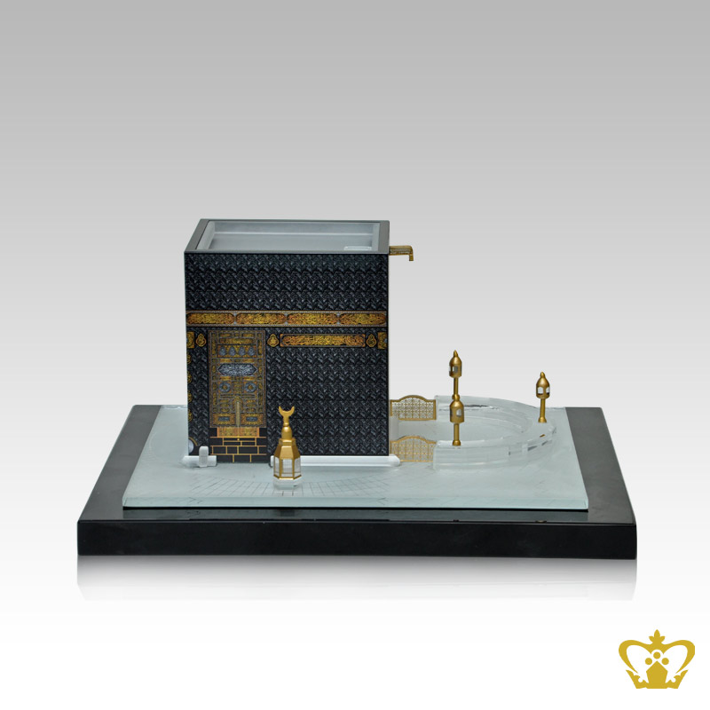 The holy kaaba crystal replica handcrafted golden Arabic word calligraphy Quranic verse with black base customized logo text Islamic religious occasions gift Eid Ramadan souvenir