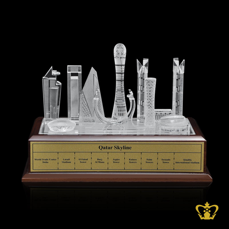 Qatar-skyline-famous-landmark-crystal-replica-with-wooden-base-tourist-gift-souvenir-customized-logo-text Product Product Product Product Product