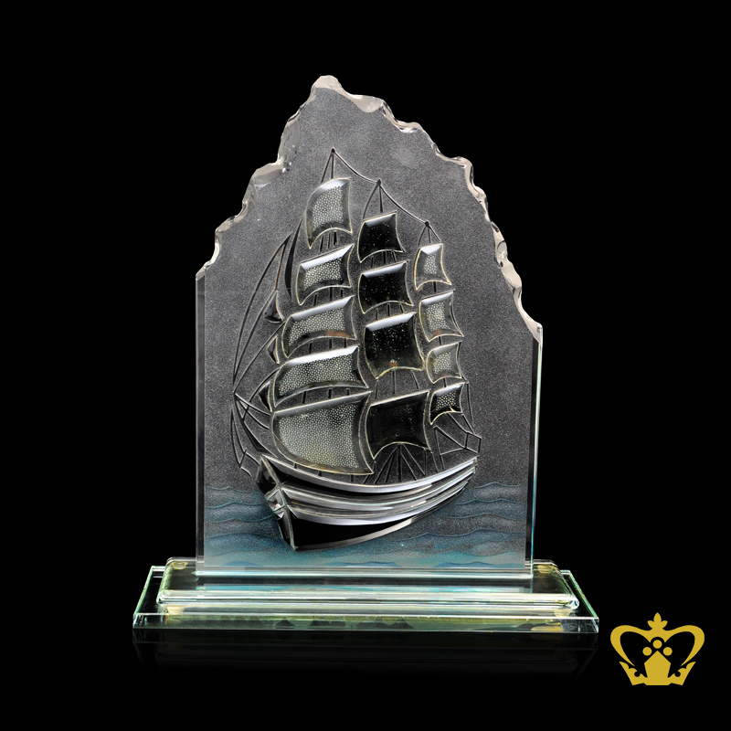 Personalized-crystal-plaque-of-sailing-boat-or-ship-with-clear-crystal-base-custom-logo-text-engrave Product Product Product