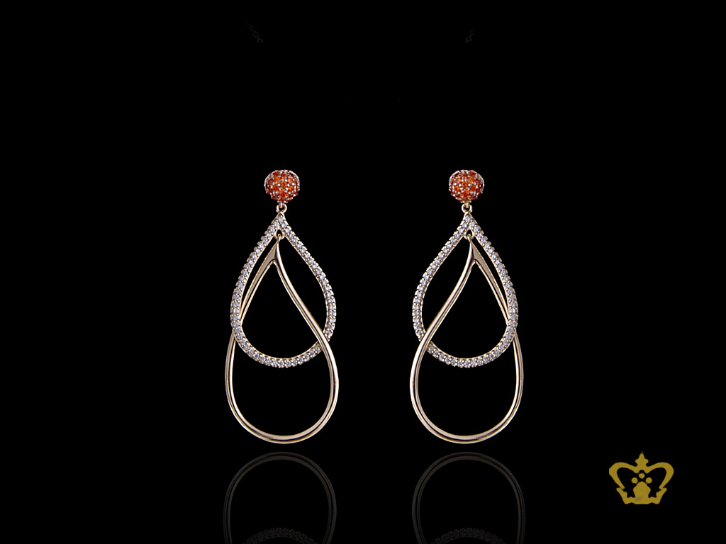 Gorgeous golden double drop earring inlaid with crystal diamond lovely gift for her