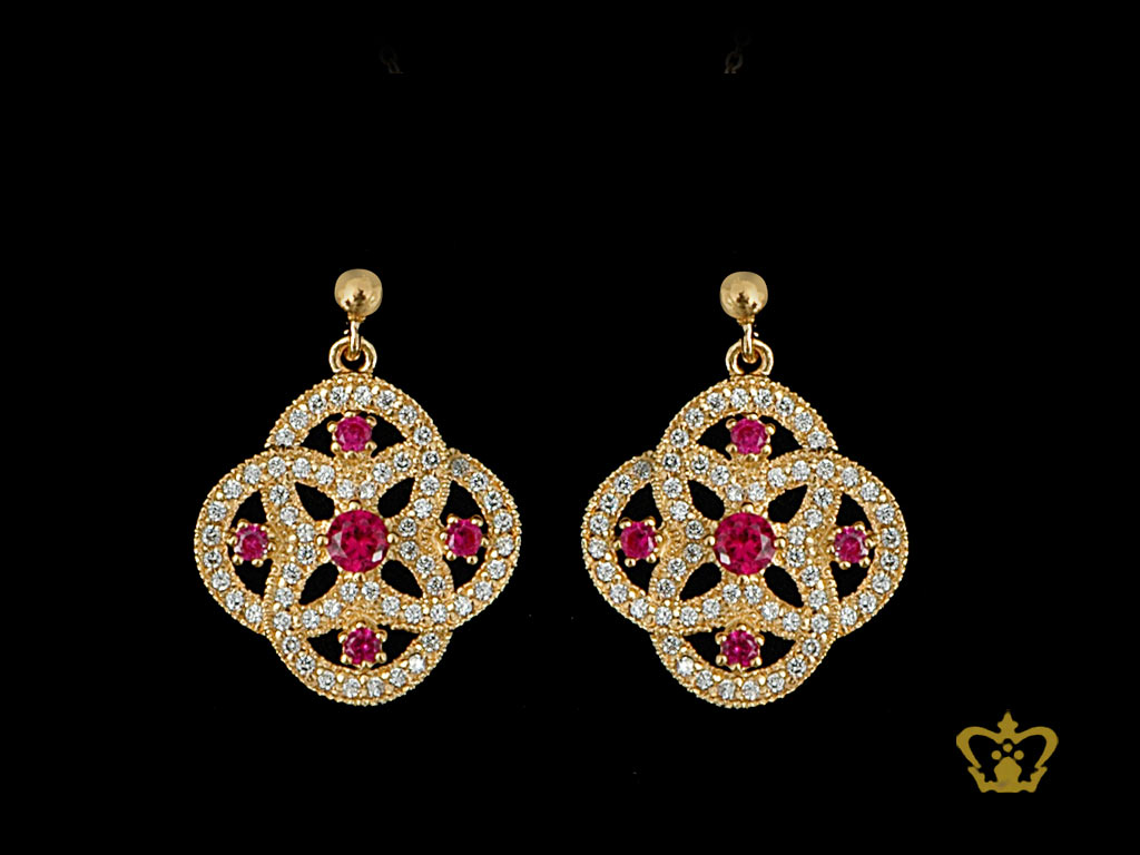 Shimmering-golden-earring-inlaid-with-pink-lustrous-crystal-diamond-lovely-gift-her Product