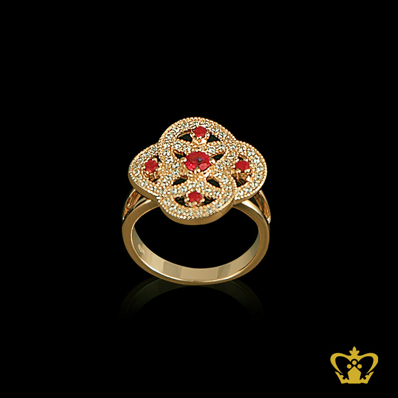 Exquisite golden designer ring inlaid with red ruby color crystal elegant gift for her