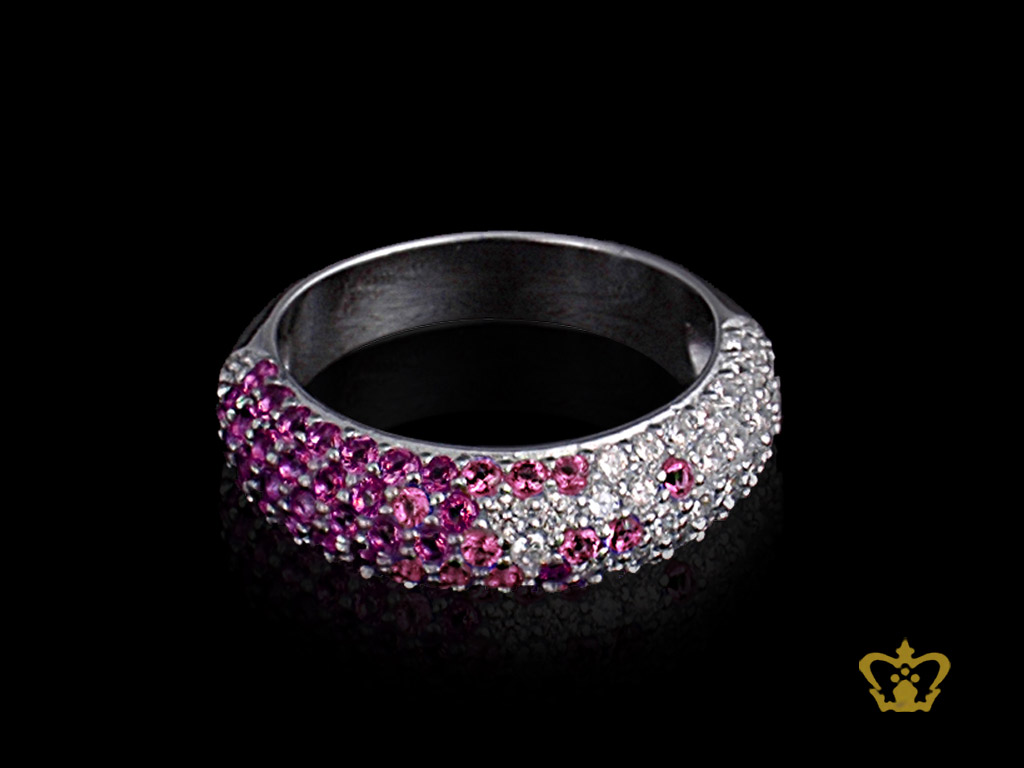 Delicate chic ring inlaid with beautiful pink and clear crystal diamonds lovely gift for her