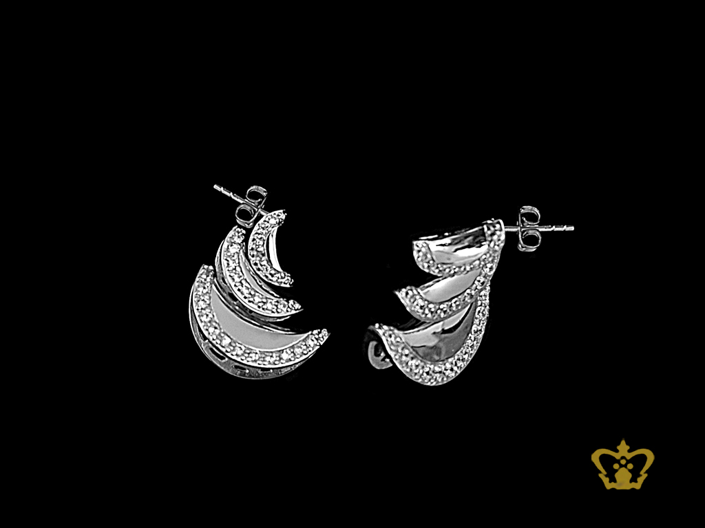 Stylish silver moon earring inlaid with crystal diamonds lovely designer gift for her