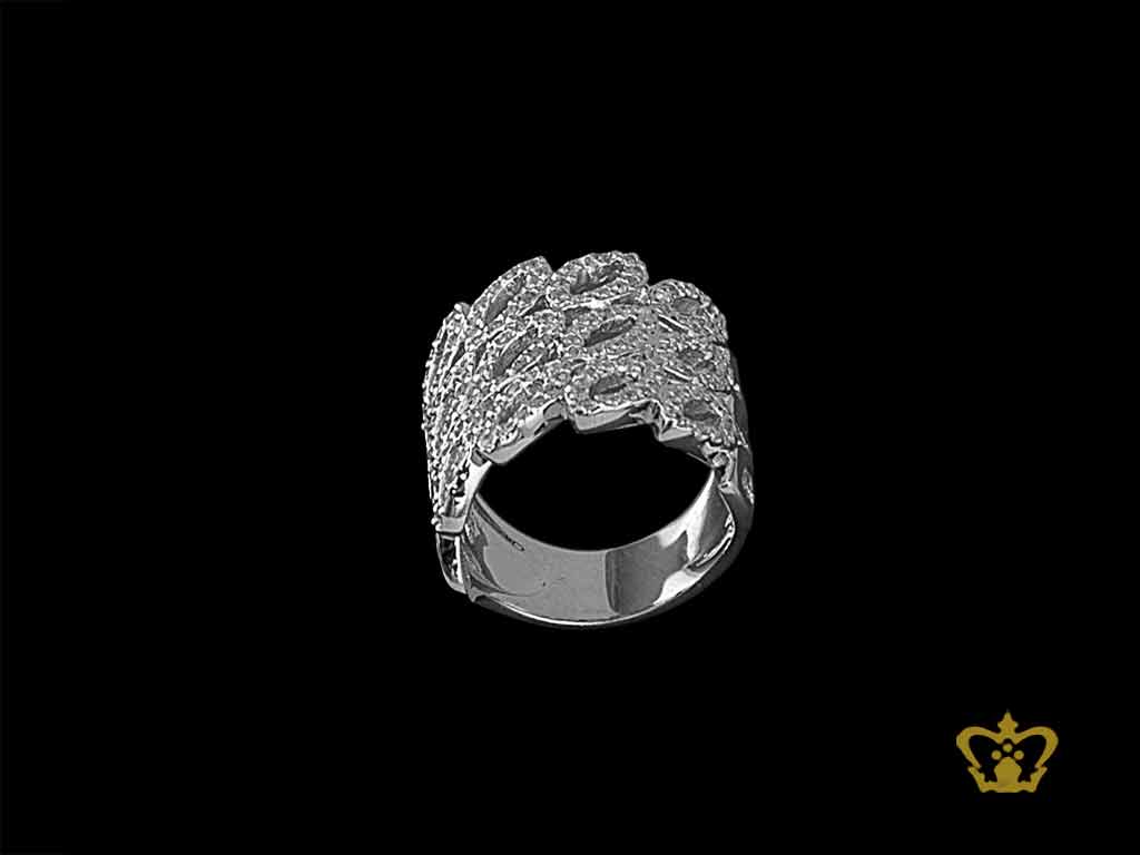 Chic designer silver leaf ring inlaid with crystal diamonds lovely gift for her