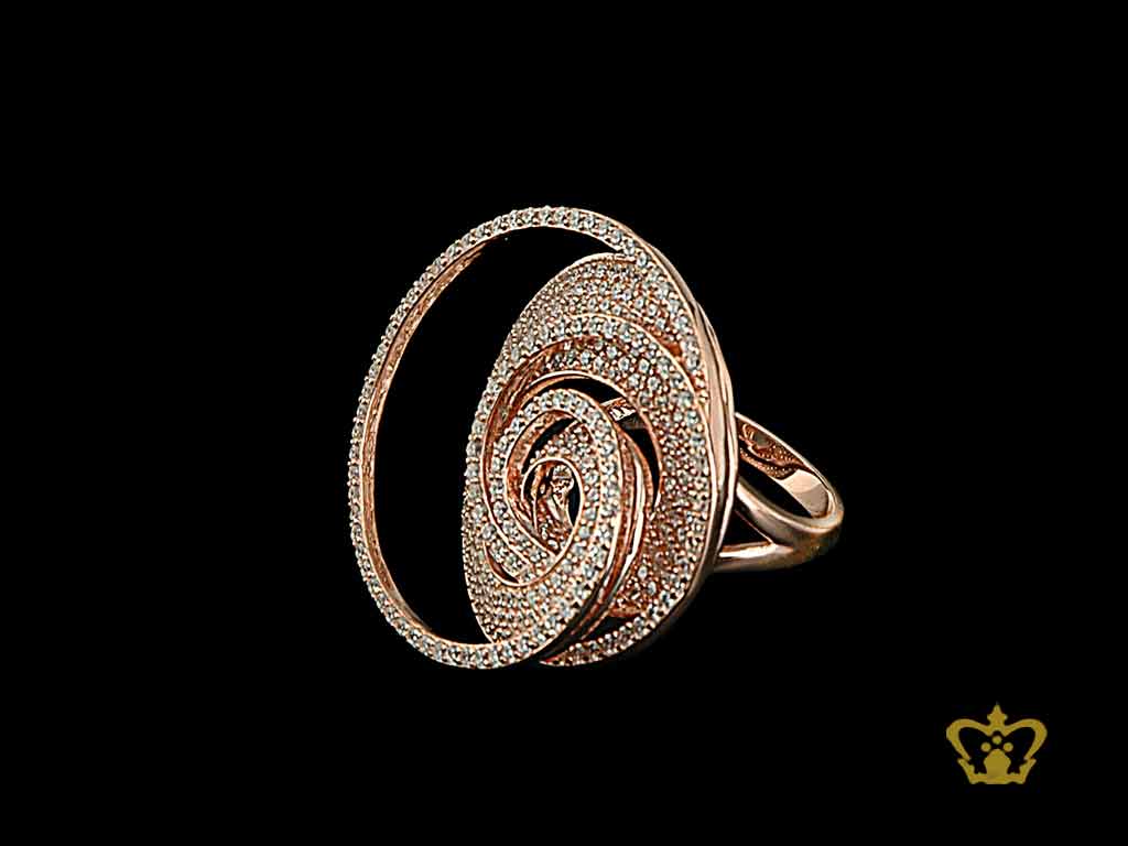 Classy-spiral-designer-rose-gold-color-ring-inlaid-with-crystal-diamonds-lovely-gift-for-her Product