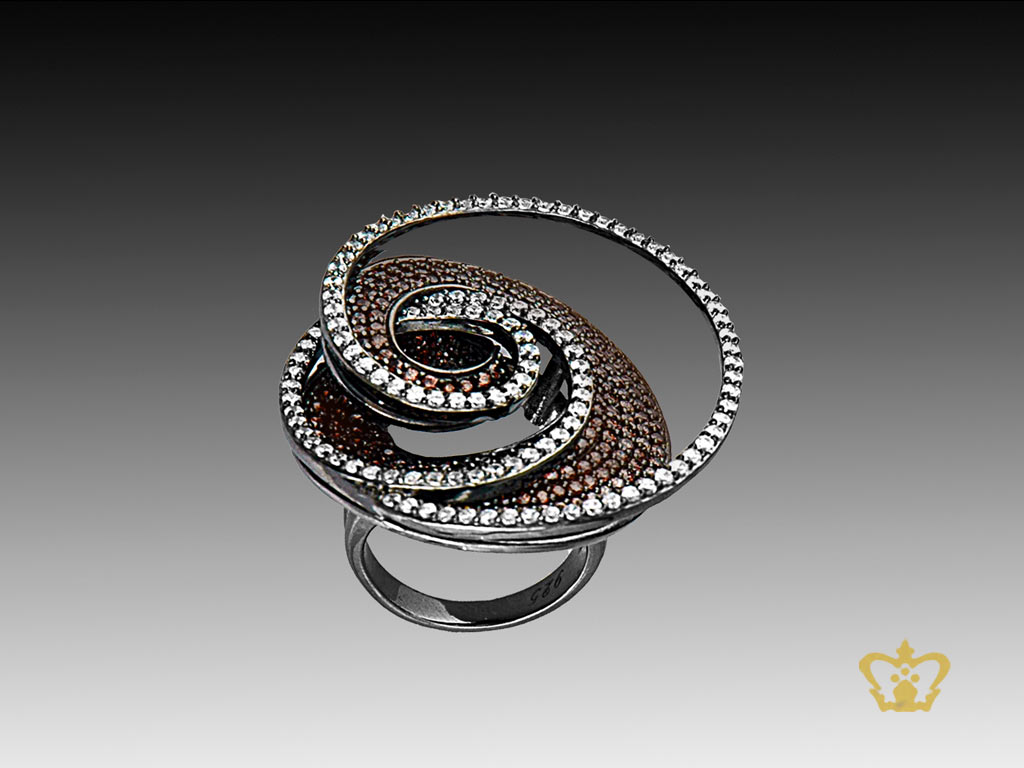 Brown-designer-silver-spiral-ring-inlaid-with-crystal-diamonds-elegant-gift-for-her Product