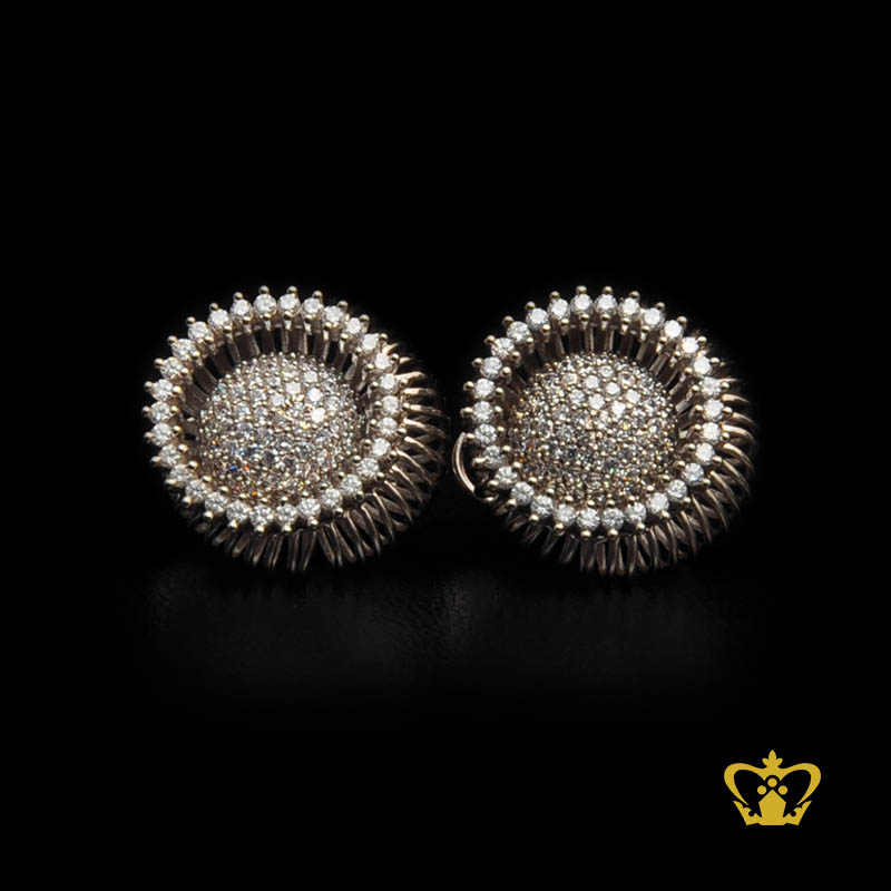 Elegant silver earring inlaid with sparkling crystal diamonds lovely gift for her