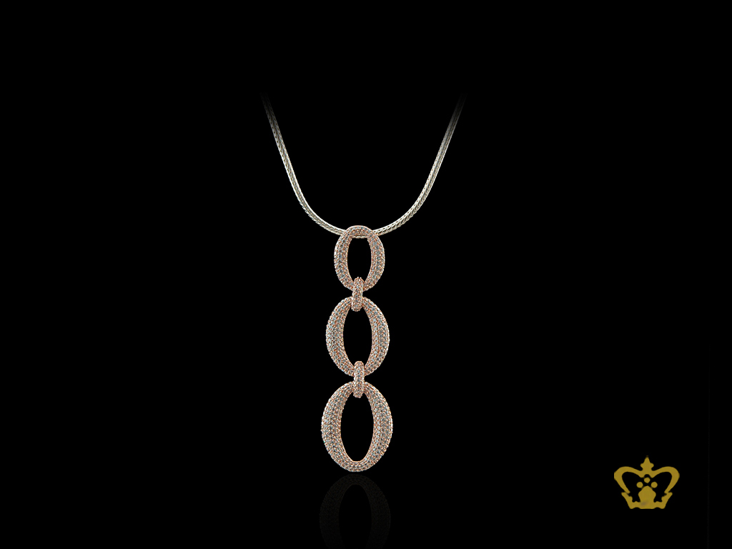 Oval shape dangling pendant pink golden inlaid with crystal diamond