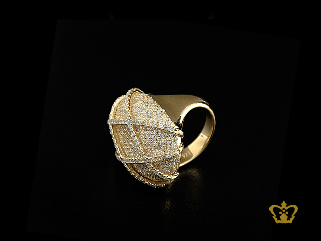 Graceful chic gold color elegant cross pattern ring inlaid with crystal diamonds lovely gift for her