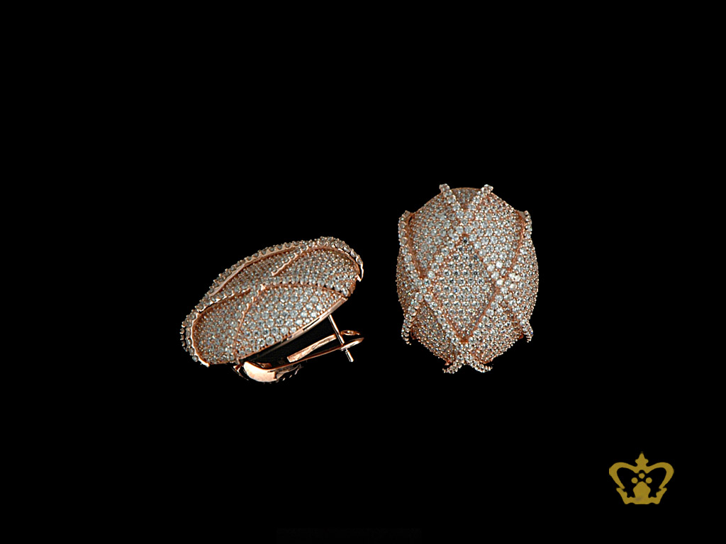 Stylish rose gold color designer earring with cross pattern inlaid with exclusive crystal diamond modish gift for her